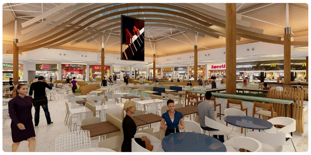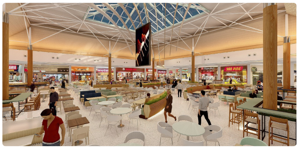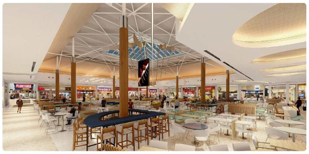 O projeto de retrofit da Praça de Alimentação contempla novo piso, novo mobiliário, mais paisagismo, novo projeto de iluminação e muito mais conforto. Confira abaixo como vai ficar: