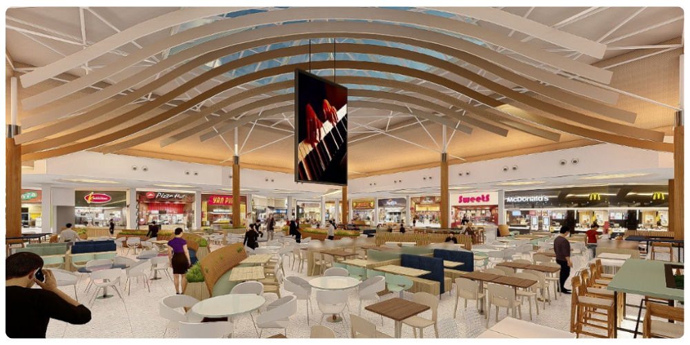 O projeto de retrofit da Praça de Alimentação contempla novo piso, novo mobiliário, mais paisagismo, novo projeto de iluminação e muito mais conforto. Confira abaixo como vai ficar: